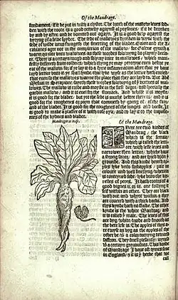 Illustration of Mandrake plant from William Turner's Herbal, the first to be written in English rather than Latin
