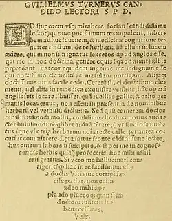 Preface of Libellus de Re Herbaria Novus with name Guilielmus Turnerus