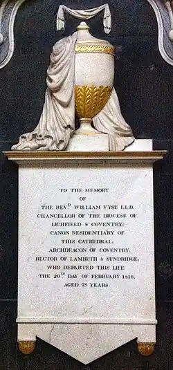 Memorial to William Vyse in Lichfield Cathedral