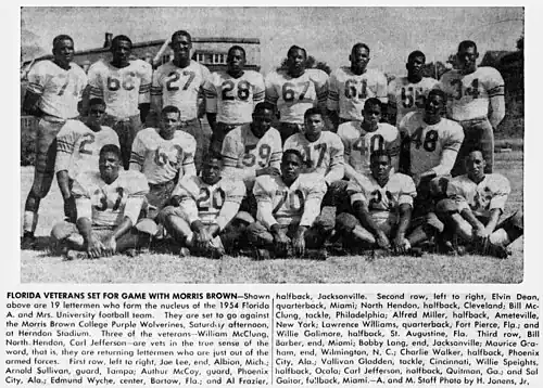 - ^ a b "Unexpected Losses Dim Rattler Hopes: Florida A&M Lacks 'Class' Despite Depth," Miami News, Sept. 13, 1953, p. 3F.