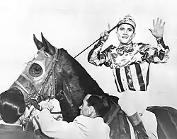 Born in Wilkes-Barre, Pennsylvania,[2] Harmatz was reported in the media as "Willie", "Bill" and by people who knew him, as "Billy". He was still a child when his family relocated to Boyle Heights[2] in East Los Angeles, California where he was a star gymnast at Theodore Roosevelt High School. As a teenager, he began exercising Thoroughbred racehorses which would lead to a professional riding career beginning in 1953 at the Agua Caliente Racetrack in Tijuana, Mexico. The following year, on April 23, 1954, he had six consecutive wins at Bay Meadows Racetrack.[3] In 1957, he was part of a rare triple dead heat at Hollywood Park Racetrack with fellow jockeys George Taniguchi and Bill Shoemaker.[4]