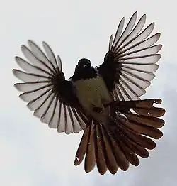 - ^ Jackson J, Elgar MA (1993). "The foraging behaviour of the willie wagtail Rhipidura leucophrys: Why does it wag its tail?". Emu. 93 (4): 284–86. doi:10.1071/MU9930284.