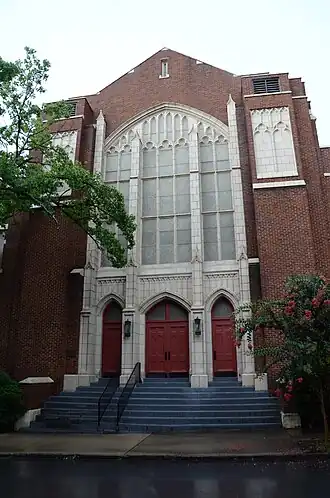 Quapaw Quarter United Methodist Church, formerly the Winfield Methodist Church is a historic church at 1601 Louisiana Street in Little Rock, Arkansas. It is a two-story brick building with Gothic Revival style, designed by the prominent architectural firm of Thompson and Harding, and built in 1921. Its main facade has three entrances below a large Gothic-arch stained glass window, all framed by cream-colored terra cotta elements. A square tower rises above the center of the transept.[2]
