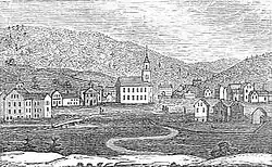 Winsted in 1836, a woodblock print drawn by John Warner Barber