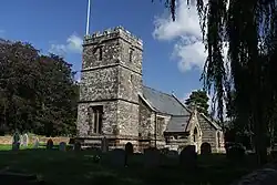 The parish church is dedicated to St Mary and is a Grade II listed building, being inscribed in the register on 14 July 1955.[7] The tower dates to the fifteenth century but the rest of the building was rebuilt by the architect Thomas Henry Wyatt in 1866, using some materials from an earlier building. Although the main fabric dates from this rebuild, the building has several older features such as a fourteenth century doorway in the south vestry wall, and some of the windows in the chancel, which are thirteenth century. The tower is of rubble stone while the rest of the church is banded with flint and stone and the roofs are slated. The plan consists of nave, chancel, north aisle, south vestry, south porch and west tower. The tower has three stages, the parapet being battlemented and there being a gargoyle on the west wall. Internally, the nave has an arch-braced collar beam roof while the chancel has a wagon roof with plaster panels and moulded ribs.[7]