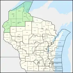 The 25th Senate district of Wisconsin is one of 33 districts in the Wisconsin Senate.[1] Located in northwest Wisconsin, where Wisconsin meets Lake Superior, the district comprises all of Ashland, Bayfield, Burnett, Douglas, Iron, Polk, Sawyer, and Washburn counties. It contains the cities of Superior, Ashland, Bayfield, Hayward, Spooner, and Washburn. The district also includes the Bad River Indian reservation and the Chequamegon–Nicolet National Forest.[2]