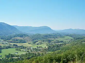 According to the U.S. Census Bureau, the county has a total area of 405 square miles (1,050 km2), of which 403 square miles (1,040 km2) is land and 2 square miles (5.2 km2) (0.5%) is water.[5] The county is part of the Appalachians and has many mountainous features, including the peak of High Knob and Powell Valley.