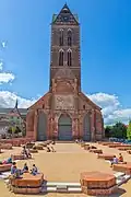 The historic old town, centered on the huge marketplace (one of the largest in northern Germany at 10,000 m2 or 110,000 sq ft), is characterized by town houses, manufacture and trading structures of the Hanseatic League, built in Brick Gothic style during the 13th to 15th centuries, 19th-century Romanesque Revival architecture and Art Nouveau houses. Distinctive buildings and military works, built during the period of Swedish control during the 17th and the 18th centuries provide another layer of cultural influence.[3]