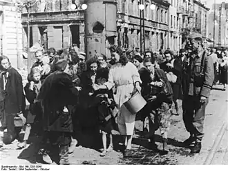 On the evening of August 5, SS-Obergruppenführer Erich von dem Bach-Zelewski managed to have Hitler's order, which called for the extermination of all Warsaw residents regardless of age and gender, revoked. On the morning of August 6, the Germans led nearly 4,000 survivors from the massacre out of the workshops on Moczydło Street and marched them westward. Among this column were the female staff of the Wola Hospital and the surviving patients. After a nearly hour-and-a-half march, the column was brought into Fort Bema.[48] Before this, however, nurse Anna Wielowieyska managed to escape from the crowd. She alerted the residents of the nearby village of Jelonki, who rushed to help the Warsaw refugees, bringing water, milk, and food.[49] Soon, the Germans agreed to release mothers with small children, allowing nearly 400 people to leave the fort, including almost all the young female doctors and students.[50] Taking advantage of the fact that the fort was manned by Wehrmacht soldiers, Dr. Janina Misiewicz requested the release of all patients and hospital staff members. She was supported by Marian Klimaszewski, the sołtys of Jelonki, who offered to provide food and shelter for the hospital.[51] After some hesitation, the German commander granted these requests. By the end of the day, 140 patients and 92 hospital staff members were settled in the village (including 4 doctors, 8 students, 34 Daughters of Charity, 4 certified nurses, and 42 auxiliary workers).[52] Many healthy refugees also managed to leave the fort, disguised as wounded and sick individuals by the hospital staff.[53]