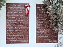 - ^ The ceremony was attended by relatives of the Girl Scouts, their friends from the Grey Ranks, and two surviving members of the Emilia Plater troop – Wanda Łokietek-Borzęcka and Wanda Jaskłowska (Gursztyn (2014, p. 375)).