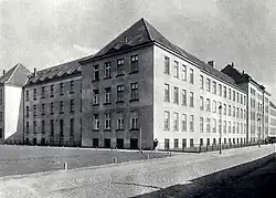 The Karol and Maria Children's Hospital was situated in a complex of nine pavilions occupying the block bordered by Leszno, Młynarska, Karolkowa, and Żytnia streets (address: 136 Leszno Street). The facility had 150 children's beds.[206] In the plans for the Warsaw Uprising, the hospital was designated as the main dressing station for the Parasol Battalion.[m][207][208] However, after the "W" hour (the start of the uprising), the Wola Hospital fell directly into the combat zone, necessitating the Karol and Maria Hospital to assume the role of the central medical point in Wola.[8] As a result, wounded insurgents and civilians continuously arrived, as well as a few captured German soldiers, and the patient count quickly exceeded the hospital's capacity.[209][210][211] Some of the injured had to be transported to the nearby St. Lazarus Hospital.[212]