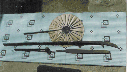 It usually had a spike on the end of the handle, and a feather or tassel attached by a ring to the back of the blade. There was a variant of the woldo called the danwoldo, which had a bigger blade.