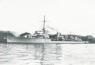 Z9 Wolfgang Zenker was a Type 1934A-class destroyer built for Nazi Germany's Kriegsmarine in the mid-1930s. Several days after the start of World War II, she unsuccessfully attacked, together with another destroyer, Polish ships anchored at the naval base on the Hel Peninsula. In early 1940 the ship made two successful minelaying sorties off the English coast that claimed six merchant ships. Wolfgang Zenker participated in the early stages of the Norwegian Campaign by transporting troops to the Narvik area in early April 1940. The ship fought in both naval Battles of Narvik several days later and had to be scuttled after she exhausted her ammunition.