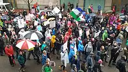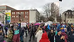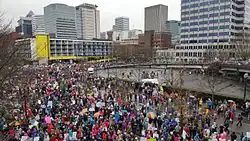 The Women's March on Portland, also known as the Portland Women's March,[1] the Women's March on Washington, Portland,[2] and Women's March Portland,[3] was an event in Portland, Oregon. Scheduled to coincide with the 2017 Women's March, it was held on January 21, 2017, the day after the inauguration of Donald Trump.[4][5] The march was one of the largest public protests in Oregon's history with crowd estimates as high as 100,000 participants. No arrests were made during the demonstration.