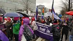The NAACP of Portland withdrew its support of the protest, accusing the original organizers of failing to discuss discrimination affecting minority groups, specifically immigrants, Muslim women, and women of color.[5][24][25] The group's president, Jo Ann Hardesty,[34] said she was told that those issues, along with anti-Trump and Black Lives Matter messaging and signage, were "too political".[5] As a result of the affiliate's criticism, the small group of women from Eastern Oregon who served as the original organizers of the Portland event were replaced with new leaders to "[give] a larger platform to women of color".[4][5] After the NAACP chapter was made aware of the leadership changes, Hardesty explained: "I felt it was important that we not miss this teachable moment about what role of race and religion and class were playing in pulling this march together."[5] Furthermore, she told Willamette Week: "Putting a black woman's face at the beginning of the march doesn't fundamentally change the reason we withdrew our support. It's always been the case that if somebody suffers a racist incident, you're just supposed to suck it up and then, for the sake of unity, let's all join hands and pretend it didn't happen. I'm just at a place where I don't think that's healthy or wise anymore."[24]