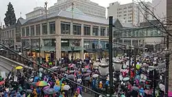 Demonstrators in front of Pioneer Place on Southwest Fourth Avenue