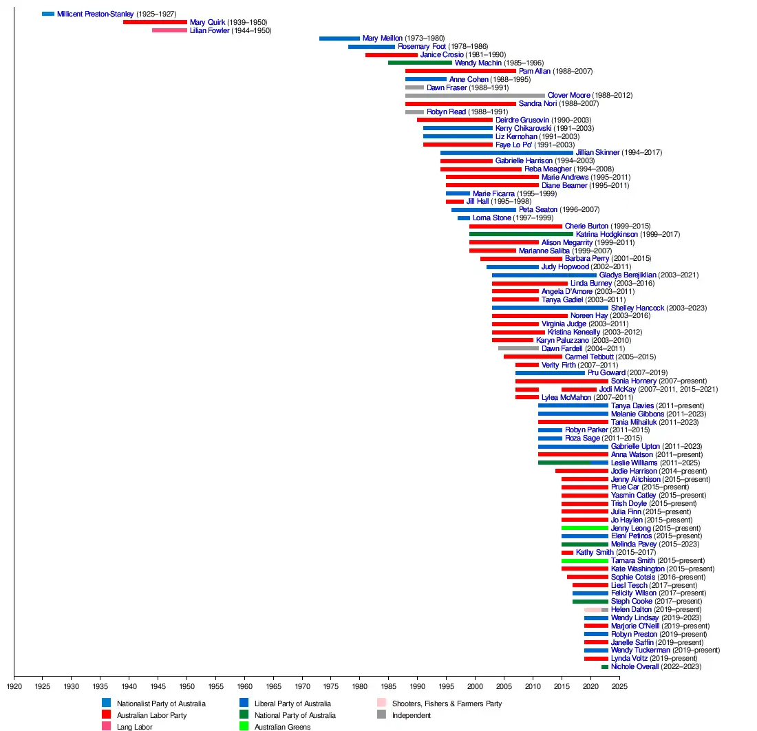 - ^ "Women Members of the NSW Parliament - 1925 to present". About parliament. Parliament of New South Wales. Retrieved 1 July 2020.
