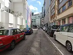 Wood Road (Chinese: 活道) is an L-shaped road in the Wan Chai district of Hong Kong Island. It connects Wan Chai Road in the northeast, opposite to C C Wu Building and Oriental 188 Shopping Centre, and Queen's Road East in the southwest, between the Tung Wah Centenary Plaza Garden and St. Joseph's Primary School. There is a staircase at the end of Wood Road and vehicles cannot drive directly from Wood Road to Queen's Road East. Wood Road is not a main road for traffic, but as there are two primary schools, two secondary schools and the Morrison Hill campus of the Hong Kong Institute of Vocational Education in the area, a large number of students use the road on daily basis.