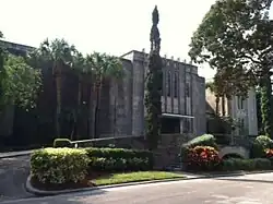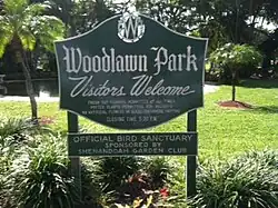 Caballero Rivero Woodlawn Park North Cemetery and Mausoleum is one of the oldest cemeteries in Miami, Florida. Woodlawn Park Cemetery–North was established in 1913 by three pioneers in Miami's early history – Thomas O. Wilson, William N. Urmey and Clifton D. Benson. The Woodlawn group of cemeteries grew throughout the years, and funeral homes were added as well. The founders imported rare tropical trees and shrubs to adorn the cemetery, including the first schefflera (umbrella trees) and mahogany trees brought to the United States.