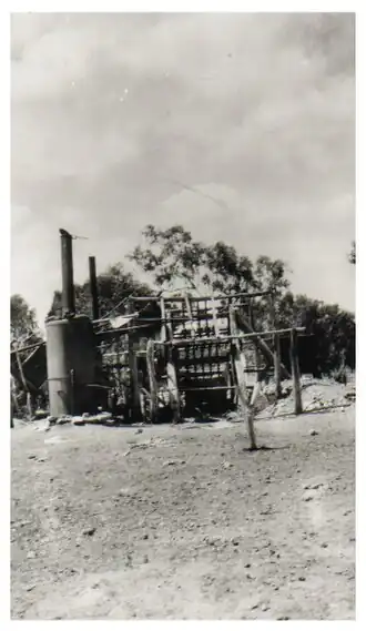 In 1880, gold was found in Woolgar, initiating a gold rush.[14][15][16] The gold rush followed the common pattern of individual miners initially engaging in panning for gold, followed by digging to find shallow reefs, and then companies raising capital for the equipment to search for deep reefs.[17]