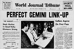 ![]() The inaugural issue of World Journal Tribune (Vol. 1, No. 1, September 12, 1966) | |