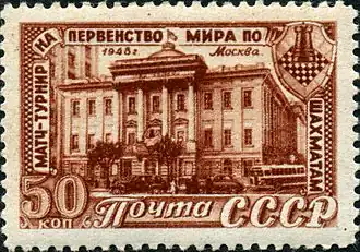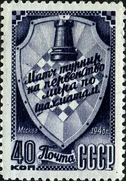 ![]() USSR stamp marking the World Chess Championship | |