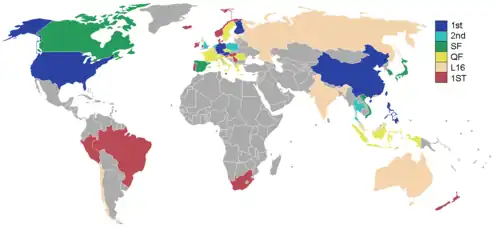 The World Cup of Pool is an annual international single-elimination tournament for doubles teams in nine-ball pool competition. The Philippines holds the record for World Cup wins, winning the title on four occasions. In 2023, they also became the first unseeded country to win the tournament.[1][2]