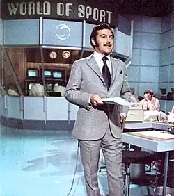 ![]() Dickie Davies in the World of Sport studio, c. 1973 | |