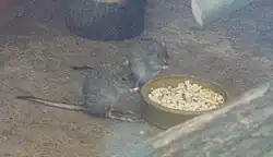As with the Potoroos and other Bettongia species, the woylie has a largely fungivorous diet and will dig for a wide variety of their fruiting bodies.[20] Although it may eat tubers, seeds, insects, and resin exuded from Hakea laurina, the bulk of its nutrients are derived from underground fungi, which it digs out with its strong fore-claws. The fungi can only be digested indirectly. They are consumed by bacteria in a portion of its stomach. The bacteria produce the nutrients that are digested in the rest of the animal's stomach and small intestine. When it was widespread and abundant, the woylie probably played an important role in the dispersal of fungal spores within desert ecosystems.[21]