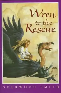 Wren to the Rescue is a novel by Sherwood Smith, which she first wrote in high school in the mid-1960s[3] under the name Tess's Mess.[4] Described are the adventures of the title character, Wren, a female human orphan[5] whose best friend Tess is revealed to be the princess of a neighbouring country.[6] When Tess is kidnapped, Wren races to her rescue, making friends with students from a Magic School and learning about her own talents along the way. As part of her adventure, Wren is transformed bodily into a dog,[7] and must decide whether to abandon her quest or try to turn her new shape to the advantage, at great risk of losing her human identity in the process.