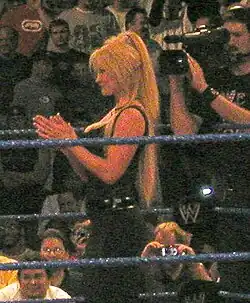 Tori was sitting front row as a plant as early as September 14's Raw Is War, but it was not until late December that she began to act with stalker tendencies, sending flowers and notes to Sable, the Women's Champion and even helping her to defend her title against Luna Vachon at the Royal Rumble.[15] On Raw Is War the night after the previous pay-per-view, Tori invaded the ring again and was publicly shouted at and humiliated by Sable. Vachon then brought Tori to the ring a fortnight after, reprimanding Sable for her ego, but a still-obsessed Tori helped attack Vachon. The following week on March 8's Raw Is War, Tori fought Vachon with Sable in her corner but after receiving a squash from Vachon, Sable also gave Tori a Sable Bomb, leading to Tori interrupting Sable's Playboy interview by demanding a championship match at WrestleMania.[11]
