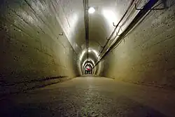 Wrights Hill Fortress is a counter bombardment coastal artillery battery in the Karori suburb of Wellington, New Zealand. It was built between 1942 and 1944 and is predominantly underground, with numerous tunnels linking the war shelters, gun emplacements, magazines, plotting rooms and engine room – which are, at some points, over 50 feet underground. The fort was intended to house three 9.2" Mk. XV guns, but only two guns were installed and the fort never saw action. After World War II was over, fort commanders fired both of the guns (Gun number one in 1946 and the second in 1947). The fall of the shot was observed in Cook Strait and these test firings (three rounds on each occasion) were deemed a success. In 1960, both of the guns were sold to the Japanese as scrap metal. The design of the fort is similar to the Stony Batter and Whangaparāoa 9.2" Mk. XV batteries, near Auckland.[1][2]