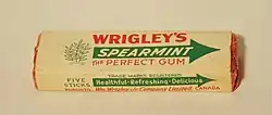 Wrigley's Spearmint is a brand of Wrigley's chewing gum. Wrigley's launched the brand in 1893,[1] and marketed the gum as its classic brand, although the company's brand Juicy Fruit has been on the market slightly longer. As the name implies, the gum is flavored with the spearmint plant.