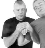 The "hyperextending wristlock" is often combined with a fingerlock as the wristlock itself is not very strong. It involves bending the wrist so that the knuckles travel back toward the forearm.