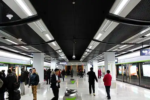 Wuhan Railway Station (Chinese: 武汉火车站) is a station of Line 4 of Wuhan Metro. It entered revenue service on December 28, 2013. It is located in Hongshan District and it serves Wuhan railway station.[4]