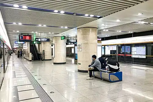 Wuzi Xueyuan Lu[1] (simplified Chinese: 物资学院路站; traditional Chinese: 物資學院路站; pinyin: Wùzī Xuéyuàn Lù Zhàn) is a station on Line 6 of the Beijing Subway.[2] The construction of this station began on September 20, 2012,[2] and was completed in 2014.[3] This station is the first in Tongzhou District, Beijing when travelling eastbound towards Lucheng.