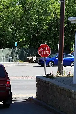 - Seten - Stop, used on road signs (with arrêt) in some Huron reserves, such as Wendake in Quebec.