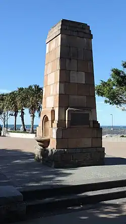 The Wynnum Wading Pool Reserve is located in a recreational reserve on the foreshore of Moreton Bay. The Wynnum jetty extends into the bay to the north of the pool and barbecue areas are located at either end of the pool. The area at the northern end has been refurbished to include showers, change rooms, toilets, a play area and a white sandy beach known as Pandanus Beach. Trees are planted along the foreshore and at either end of the pool and include pines, bauhinia and figs. A memorial to Walter Barnes, MLA for Bulimba and Wynnum, in the form of a sandstone drinking fountain is also located at the northern end of the pool.[2]