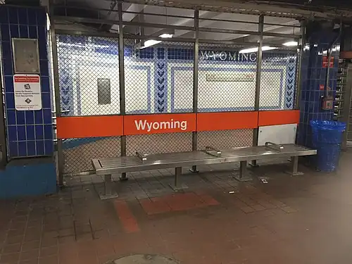 Wyoming station is an underground SEPTA Metro stop in Philadelphia. It serves the B1 and is located in the Logan neighborhood of North Philadelphia at 4700 North Broad Street and Wyoming Avenue. This is a local station, and thus has four tracks, with only the outer two being served. There are separate fare control areas for the northbound and southbound platforms, and no crossover exists. On January 4, 2025, it became the first Broad Street Line station to receive the SEPTA Metro branding.[2]