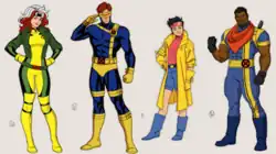DeMayo said the costumes chosen for each character indicated which comic book storylines were being adapted by the series.[28] Lead character designer Amelia Vidal retained the design concepts from the original series along with the style and aesthetics of the X-Men comic books of the 1970s to the 1990s. Any changes from those were made to either better serve the story or to assist with the technical side of the animation.[125] Nightcrawler's design is based on his appearance during John Byrne and Dave Cockrum's 1970s comic book runs.[125] In the final episodes of the first season, the X-Men don costumes based on their original comic book designs and those of the failed 1989 animation pilot X-Men: Pryde of the X-Men. DeMayo said this was always planned as part of the series' exploration of nostalgia.[126][111] The original series' animators could not move Mister Sinister around much because of his complex design, which includes tendrils coming from his back; this was not an issue for the new series, but the animators chose to restrict the character's movements to align with the original series.[12]
