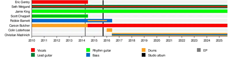 - Carson Butcher - vocals (2014–present) drums (2010–2014)