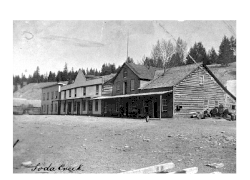 With the launching of the Enterprise the government placed a land reserve on Soda Creek. Almost at once land lots were sold. Robert McLeese, Joseph T.Senay, Robert A. Collins, Peter Dunlevy, Henry Yeates, and George Hendricks, were some, who built hotels, stores, blacksmith shops and saloons on the site.