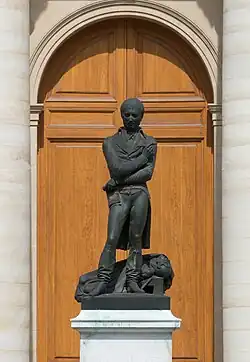 A large bronze statue of Bichat by David d'Angers was erected in 1857 in the cour d'honneur of the École de Chirurgie in Paris, with the support of members of the Medical Congress of France which was held in 1845. Bichat is also represented on the Panthéon's pediment,[11] of which the bas-relief is D'Angers' work as well. The name of Bichat is one of the 72 names inscribed on the Eiffel Tower. His name was given to the Bichat–Claude Bernard Hospital.