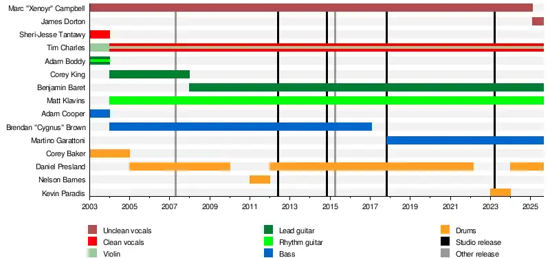 - Marc “Xenoyr” Campbell - harsh vocals (2003–2025)