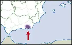 This species is endemic to the Sierra de Gádor mountains in the province of Almería, Spain.[1][3]