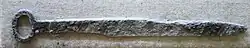 The leaf headdresses were characteristic of Xianbei culture, and are found especially in Murong Xianbei tombs. Their corresponding ornamental style also links the Xianbei to Bactria. These gold hat ornaments represented trees and antlers and, in Chinese, they are referred to as buyao ("step sway") since the thin metal leaves move when the wearer moves. Sun Guoping first uncovered this type of artifact, and defined three main styles: "Blossoming Tree" (huashu), which is mounted on the front of a cap near the forehead and has one or more branches with hanging leaves that are circle or droplet shaped, "Blossoming Top" (dinghua), which is worn on top of the head and resembles a tree or animal with many leaf pendants, and the rare "Blossoming Vine" (huaman), which consists of "gold strips interwoven with wires with leaves."[82] Leaf headdresses were made with hammered gold and decorated by punching out designs and hanging the leaf pendants with wire. The exact origin, use, and wear of these headdresses is still being investigated and determined. However, headdresses similar to those later also existed and were worn by women in the courts.[81][82]