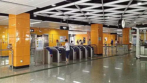 Xichang Station (simplified Chinese: 西场站; traditional Chinese: 西場站; Cantonese Yale: Sāichèuhng Jaahm), formerly Dongfeng Road West Station (东风西路站; 東風西路站; Dūngfūng Sāi Louh Jaahm) during planning,[1][2] is a station on Line 5 of the Guangzhou Metro.[3] It is located under the junction of Huanshi Road West (环市西路) and Dongfeng Road West (东风西路) in the Liwan District of Guangzhou. Huanshi Road West is the main shopping area for shoes in the city.[4][5] The station opened on 28 December 2009.[6]