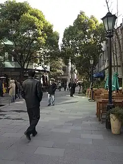 Xintiandi (Chinese: 新天地; pinyin: Xīntiāndì, Shanghainese: Shinthidi lit. "New Sky and Earth",[1] fig. "New World") is an affluent car-free shopping, eating and entertainment district of Shanghai.[2][3] Xintiandi now refers to the wider area centered around Madang Road which includes both pedestrian-only and motor traffic roads.