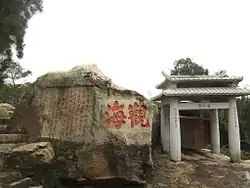 In 1728, a garrison commander Lu Ruilin inscribed the words Ruhua on the left of Yang's epitaph. Zhujie of Yanshan inscribed the words Daguan at the higher part. To the right of Yang's epitaph, there are the words Guanhai. There are also two poems engraved on the stone tablets made by Ding Yizhong and Xu Nanfeng during their visit to Kinmen and a chronicle of Xiaowo Pavilion made by Yang Hongju.[1]