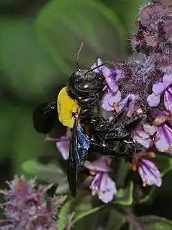 5. ^ a b Somanathan, Hema; Saryan, Preeti; Balamurali, G. (2019). "Foraging strategies and physiological adaptations in large carpenter bees". Journal of Comparative Physiology A. 205 (3). Springer Science and Business Media LLC: 387–398. doi:10.1007/s00359-019-01323-7. ISSN 0340-7594. PMID 30840127. S2CID 71147939. This review cites this research. Sadeh, A; A. Shmida; T. Keasar (2007). "The carpenter bee Xylocopa pubescens as an agricultural pollinator in greenhouses". Apidologie. 38 (6): 508–517. doi:10.1051/apido:2007036. S2CID 20295395.